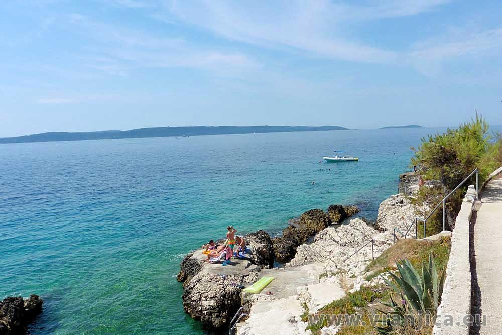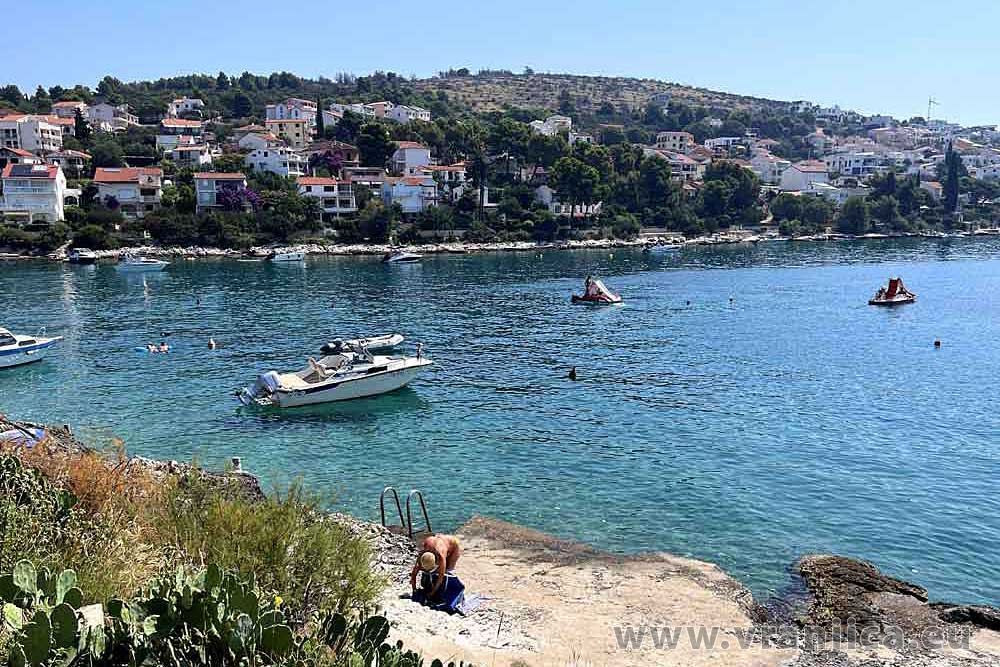The villa is located on the island of Čiovo in the southern part of Gornji Okrug in a quiet location 150 meters from the sea. View towards the open sea and the islands of Šolta and Brač.