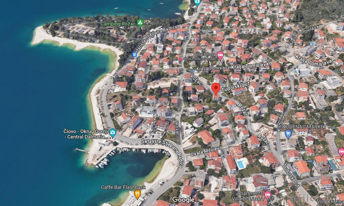 Equipment: span> You will reach the beach in less than 4 minutes comfortable, free walking. The beach is pebble with a gradual approach. Along the sea and beach there is a beach promenade with refreshment stalls, ice cream, pancakes, cafes, restaurants. And also rental boats, water scooters, electric bicycles. At a nearby camp there is a shipping station, where you can reach the promenade to Trogir. But Trogir is perfectly accessible by car, bus and even on foot (less than 2 km). The pebble beach is located 100 meters from the house and is suitable for small children. There are 3 shops around 150 m. There are restaurants, coffee bar, sports water, playgrounds.